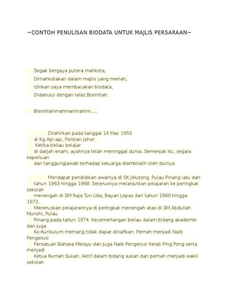 Contoh Penulisan Biodata Untuk Majlis Persaraan Pdf