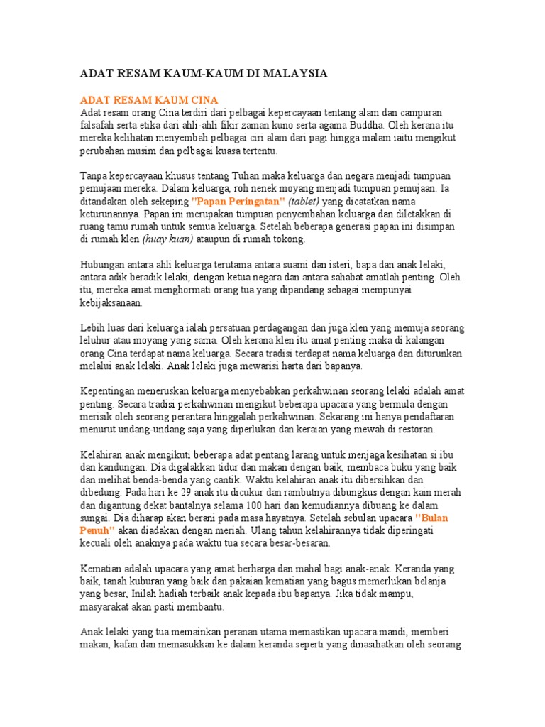 Adat Resam Kaum Di Malaysia Pdf